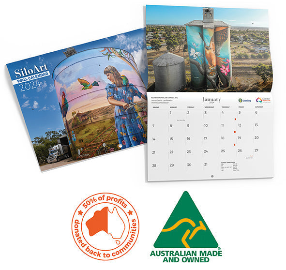 Source : brenita.com.auSilo Art Wall Calendar 2025 โ Australian Silo Art Trail Store